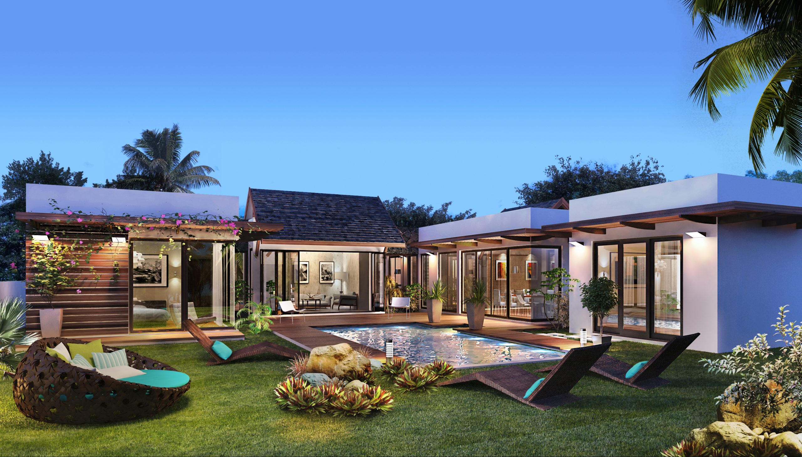 Toutes les villas possèdent 4 chambres, un jardin privatif avec piscine.