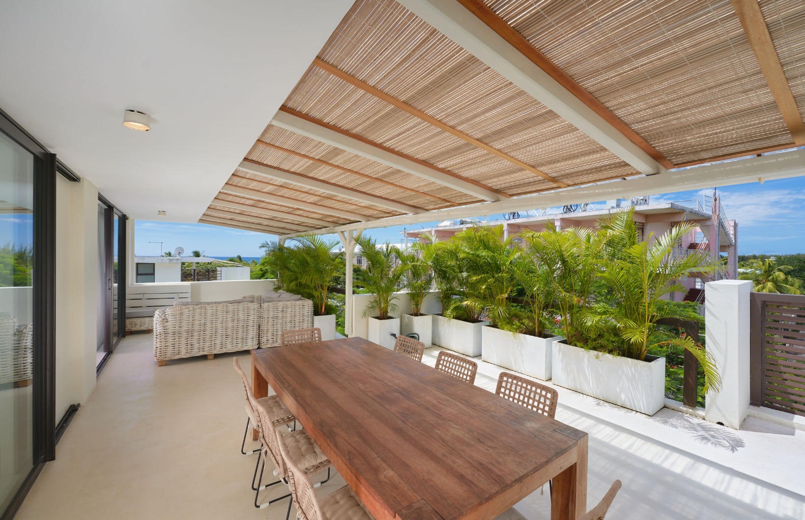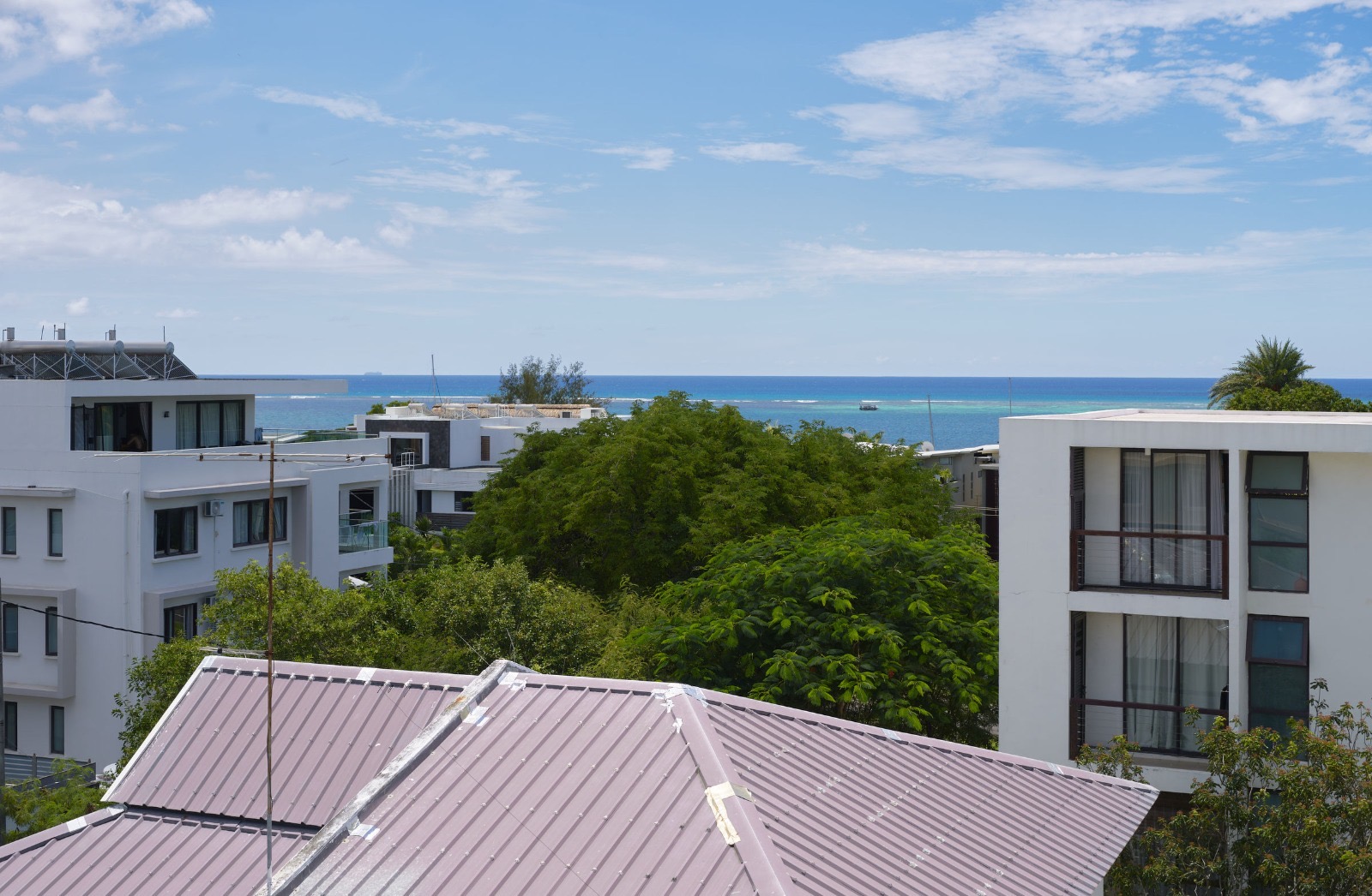 Vue mer pour ce magnifique Penthouse de 3 chambres en suite se trouvant au 3ème étage (ascenseur) d’une charmante résidence, à Mont Choisy.