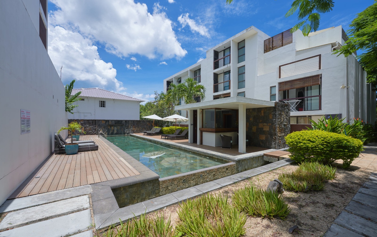 La résidence est idéalement située, à côté des commodités et de la superbe plage de Mont Choisy.