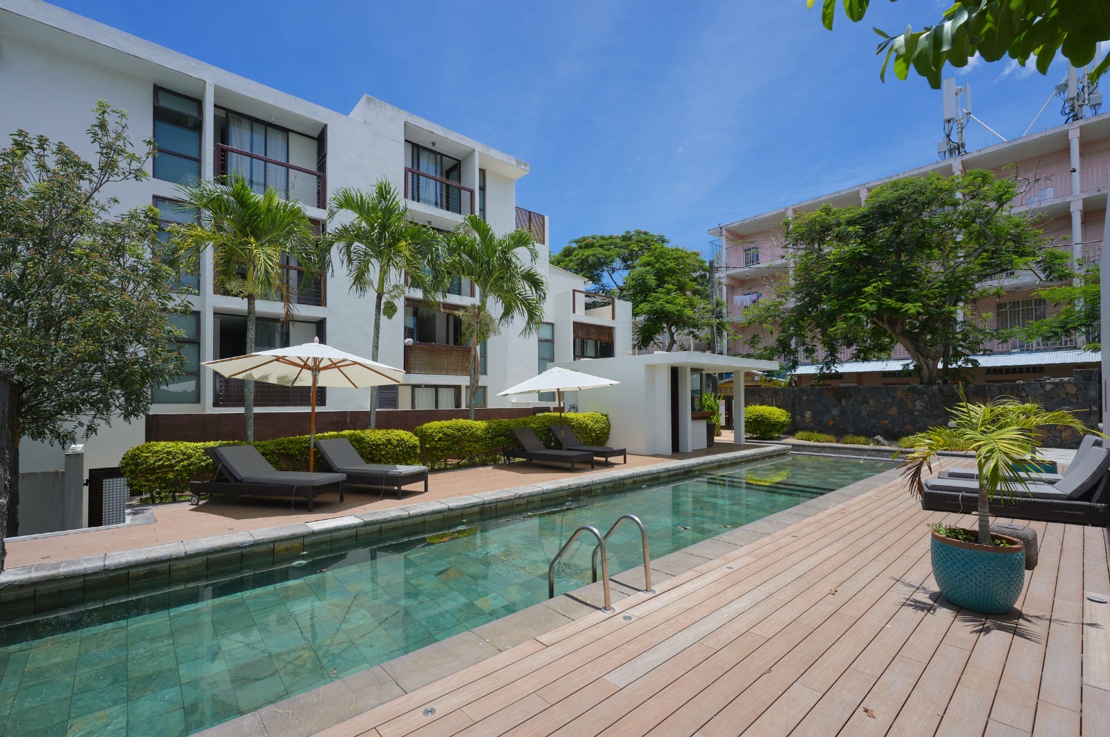 La résidence possède un générateur ainsi qu’une agréable piscine commune.