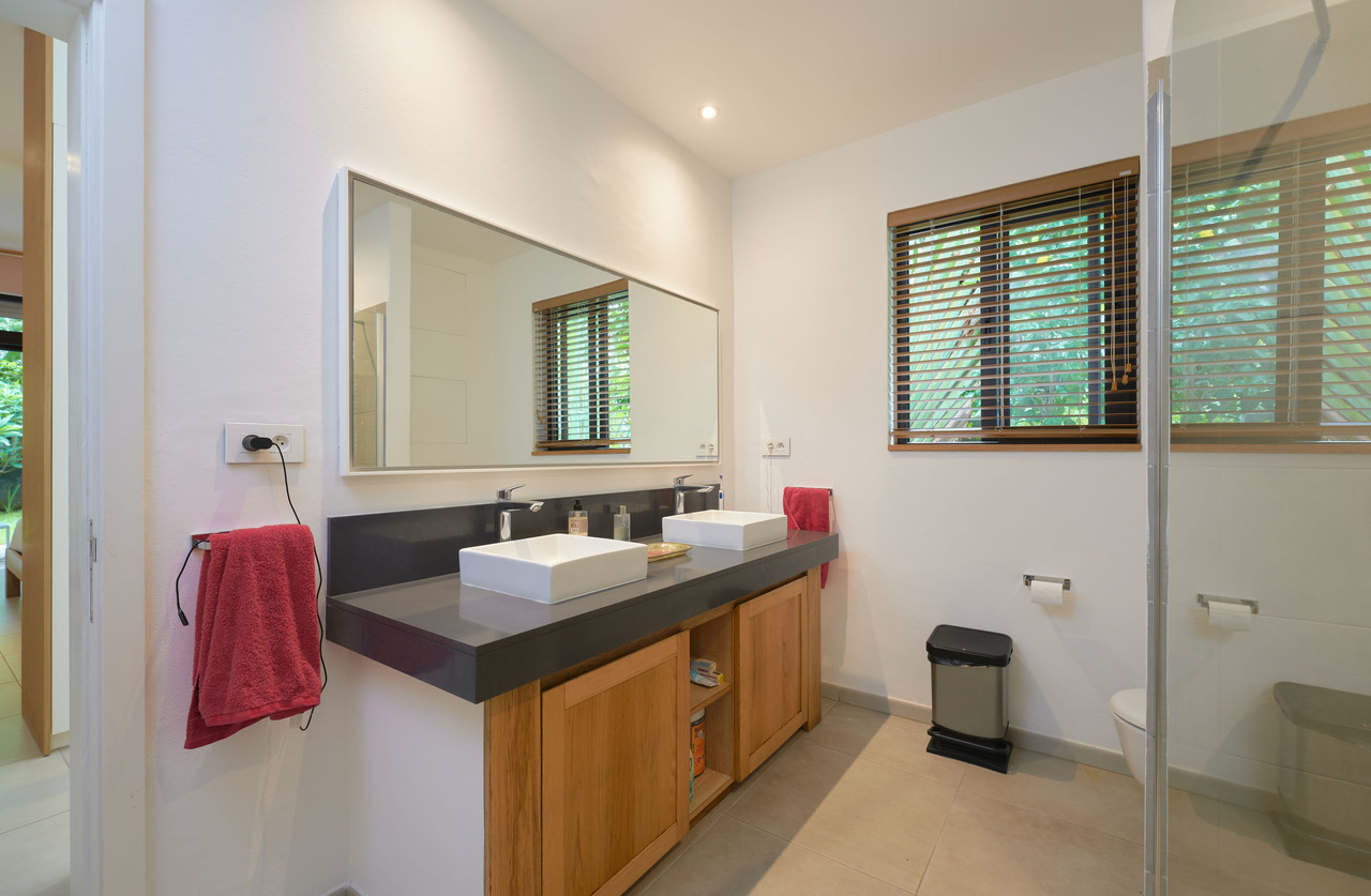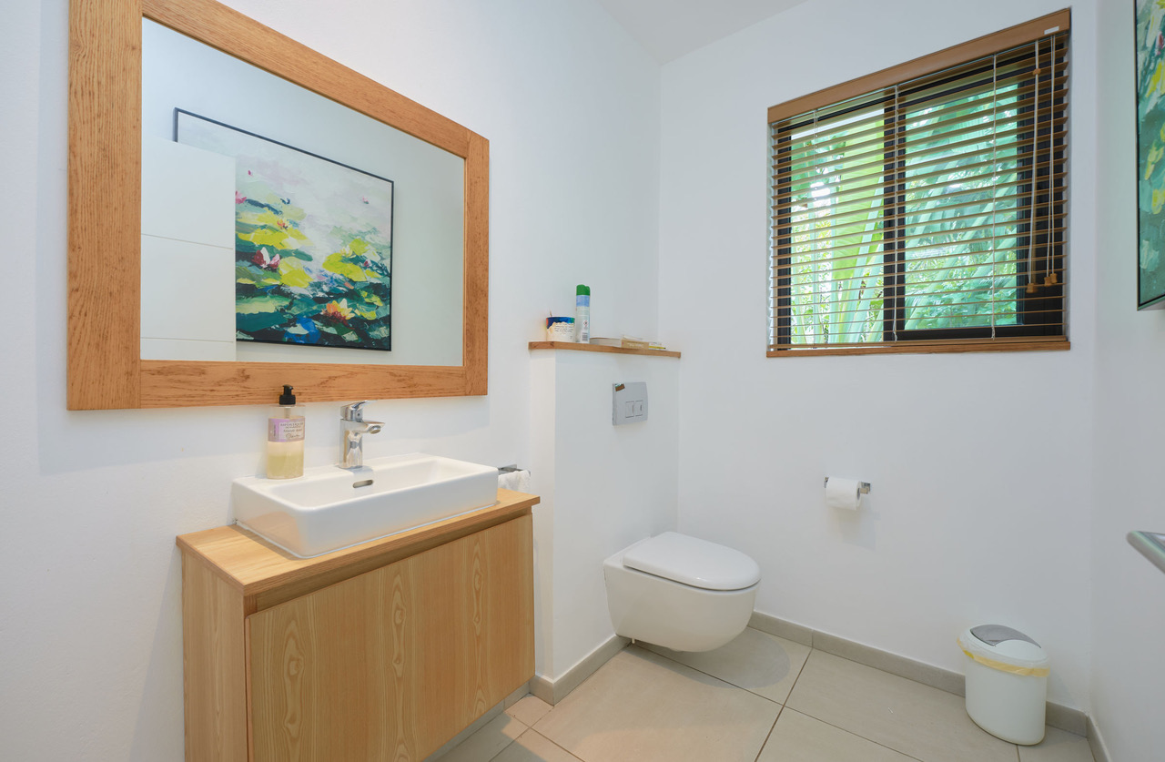 Ce bien, situé en rez de jardin, possède 3 chambres en suite, un lumineux séjour, une cuisine ouverte, des wc invités, une buanderie, un jardin ainsi que d’agréables terrasses.